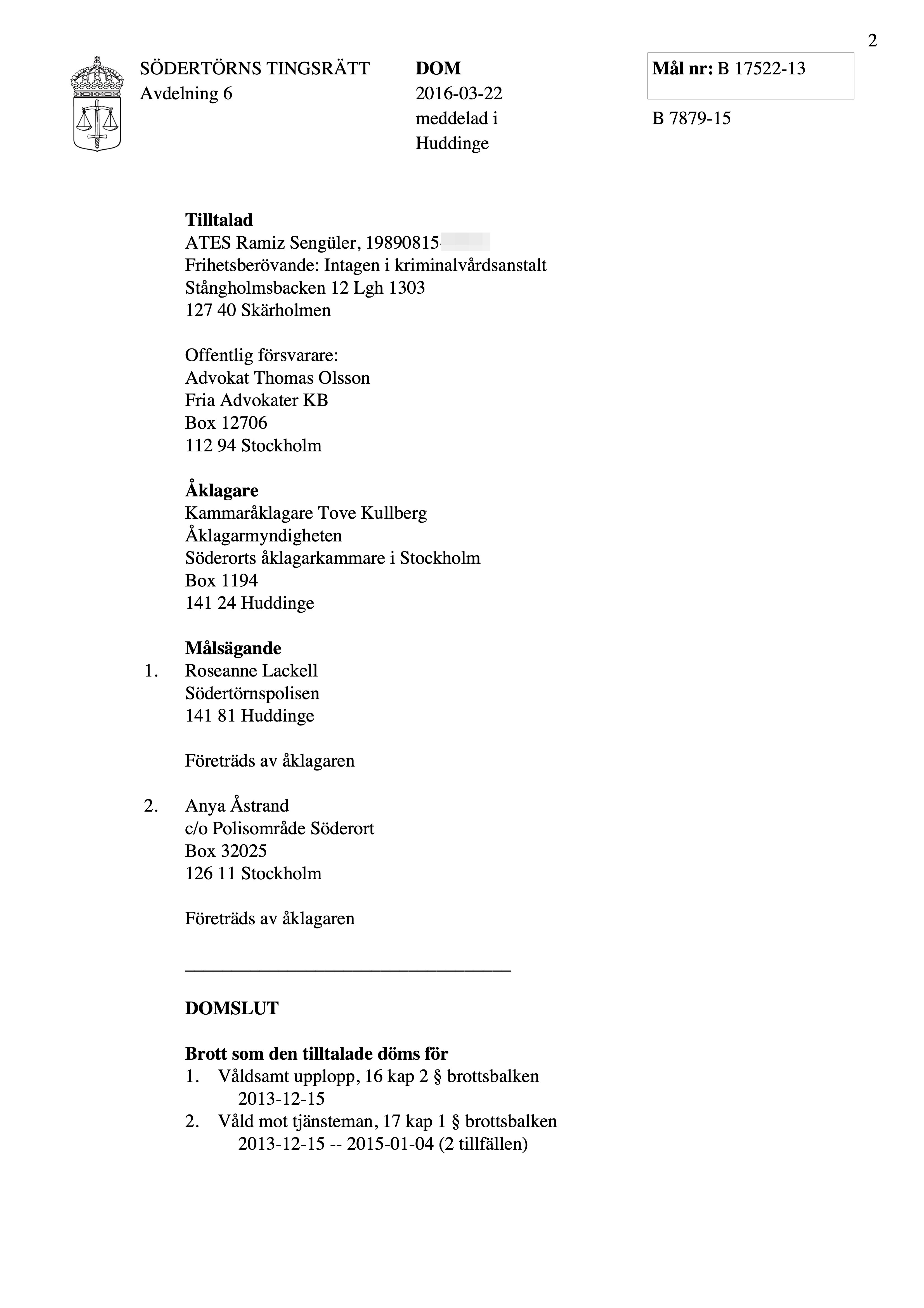Den 6 november 2018 konfronterades Ates Sengüler av maskerade män utanför sitt hem i Rönninge. Han slogs till marken med kofötter och fick ett tio centimeter långt jack i huvudet.
