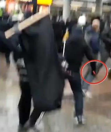 Samtidigt misshandlades andra ungdomar i gruppen. En man slogs ned och sparkades upprepade gånger medan han låg på marken.