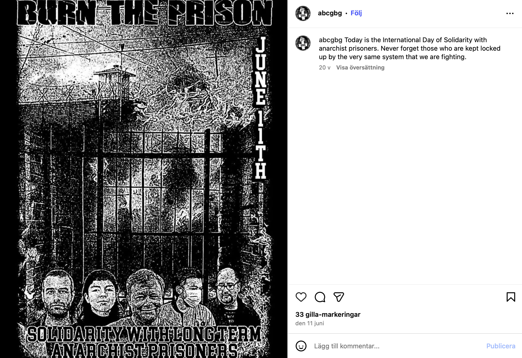 Anarchist Black Cross – finansiellt nätverk för fängslade vänsterextremister