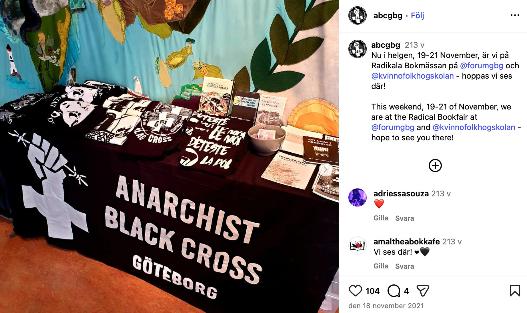 I Sverige är ABC, tidigare känt som Anarkistiska svarta hammaren, särskilt aktivt i Göteborg. Där bedriver organisationen en rad verksamheter, bland annat stödkvällar, insamlingar, brevkampanjer riktade till fängslade extremister samt utbildningar i digital säkerhet för aktivister inom den autonoma vänstern.