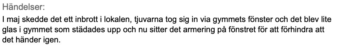 Föreningen har dessutom dragits med återkommande problem med ett krånglande lås. Vid flera tillfällen de senaste månaderna har ytterdörren stått vidöppen trots att lokalen varit helt obemannad – en säkerhetsrisk som lämnat både utrustning och känsliga dokument oskyddade. Och när dörren inte har stått öppen har tjuvar ändå lyckats ta sig in och stjäla träningsredskap.