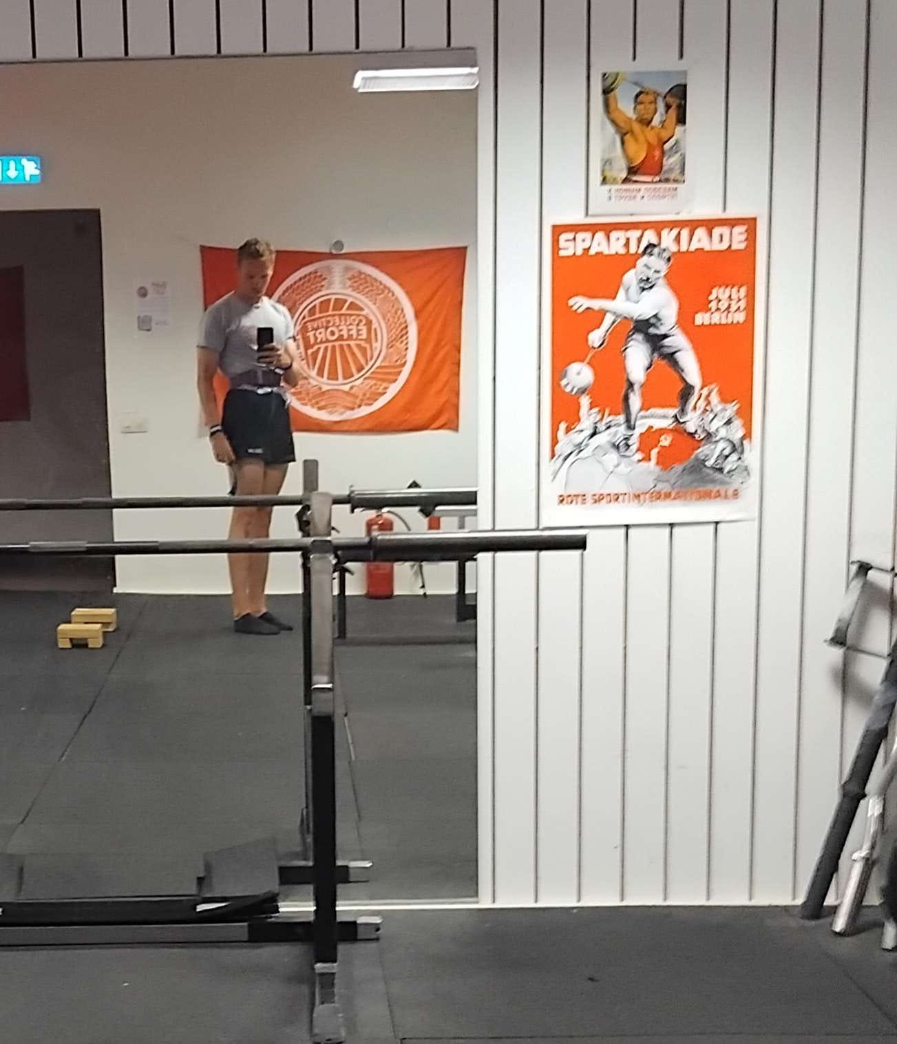 På den stora spegeln sitter en affisch med texten: ”En fascist tränade idag – gjorde du?”. Den fungerar som en ständig påminnelse om föreningens verkliga syfte: att bygga upp vänsterextremisternas våldskapital och förbereda dem för fysiska konfrontationer.