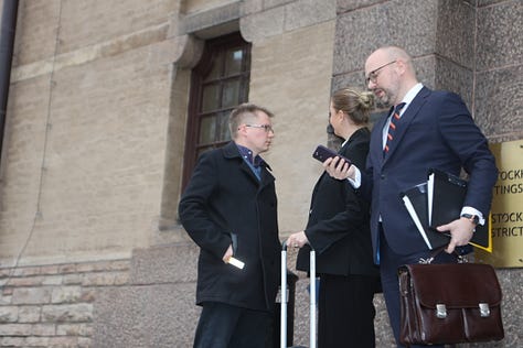 I en livesändning, som ägde rum dagen därpå, berättade Otto Larsson att han förväntade sig att advokatbyrån Hellman & Engström också ställa upp för honom, pro bono.