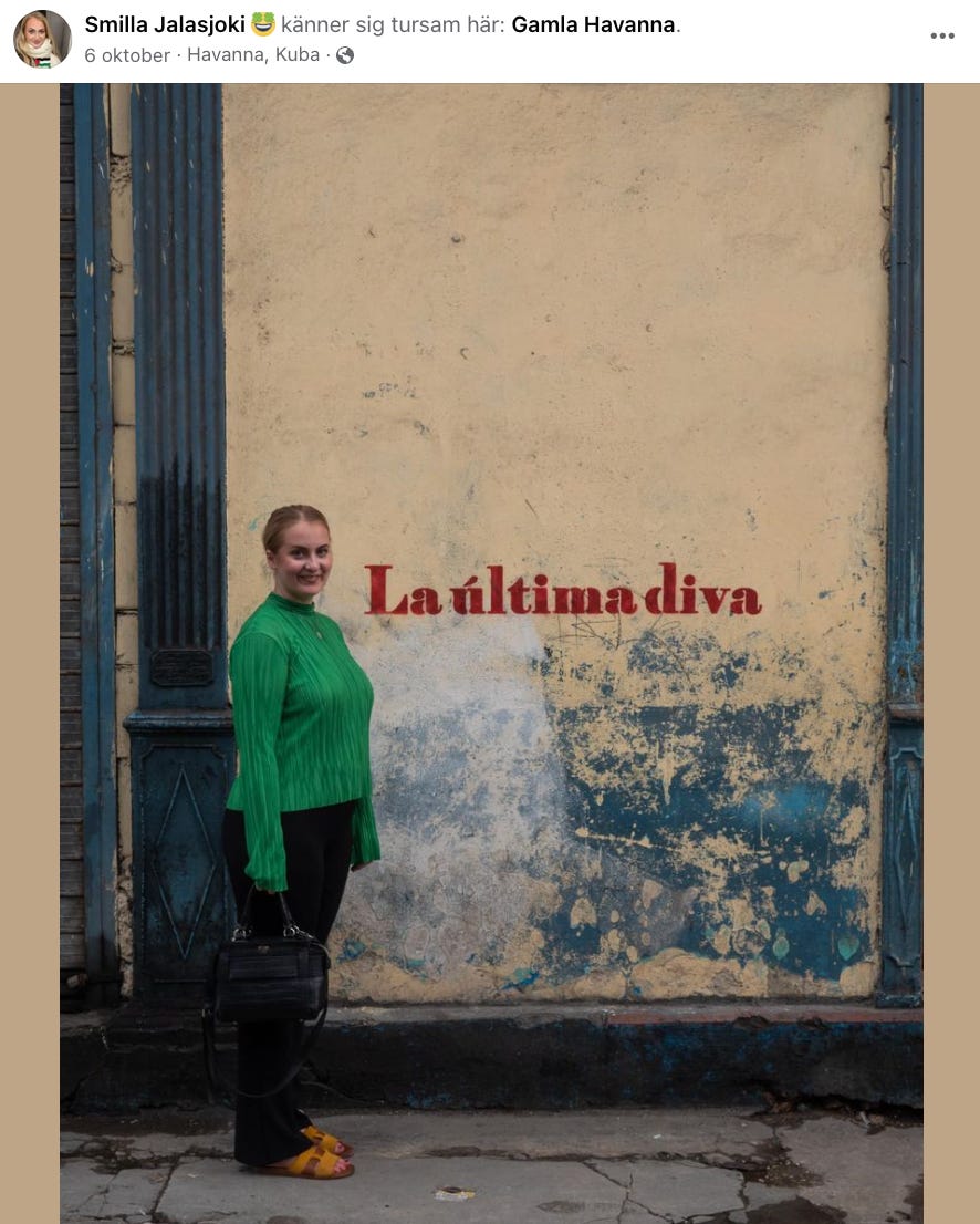 I våras reste Jalasjoki till Kuba för att stödja öns kommunistiska styre genom volontärarbete där hon enligt uppgift också var på jakt efter en pojkvän.