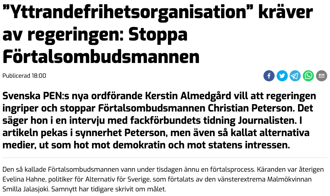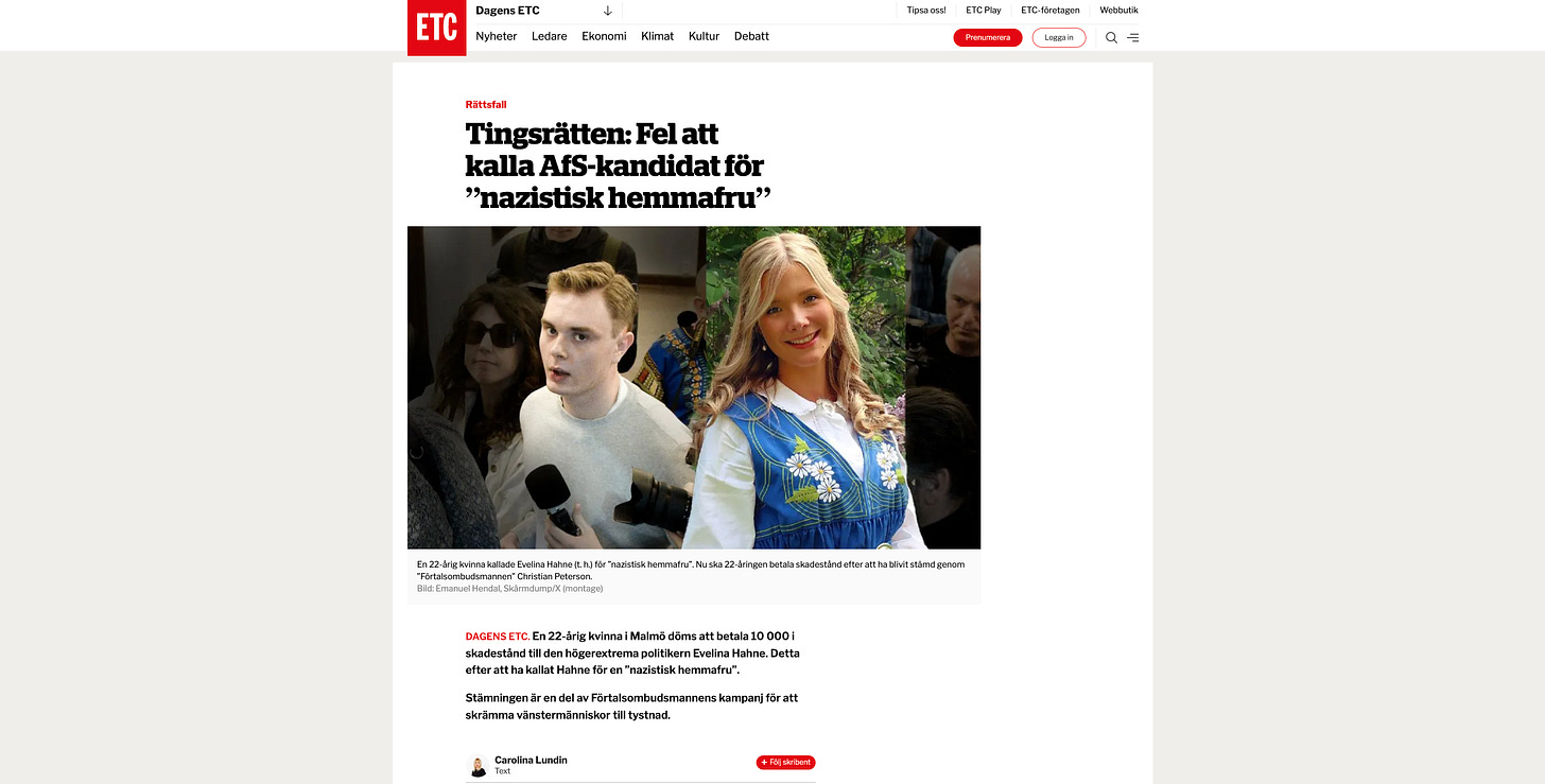 Även vänsterextrema ETC skulle beklaga sig över domen samtidigt som skribenten Carolina Lundin ljög om att Förtalsombudsmannen skulle ha som mål att tysta meningsmotståndare.
