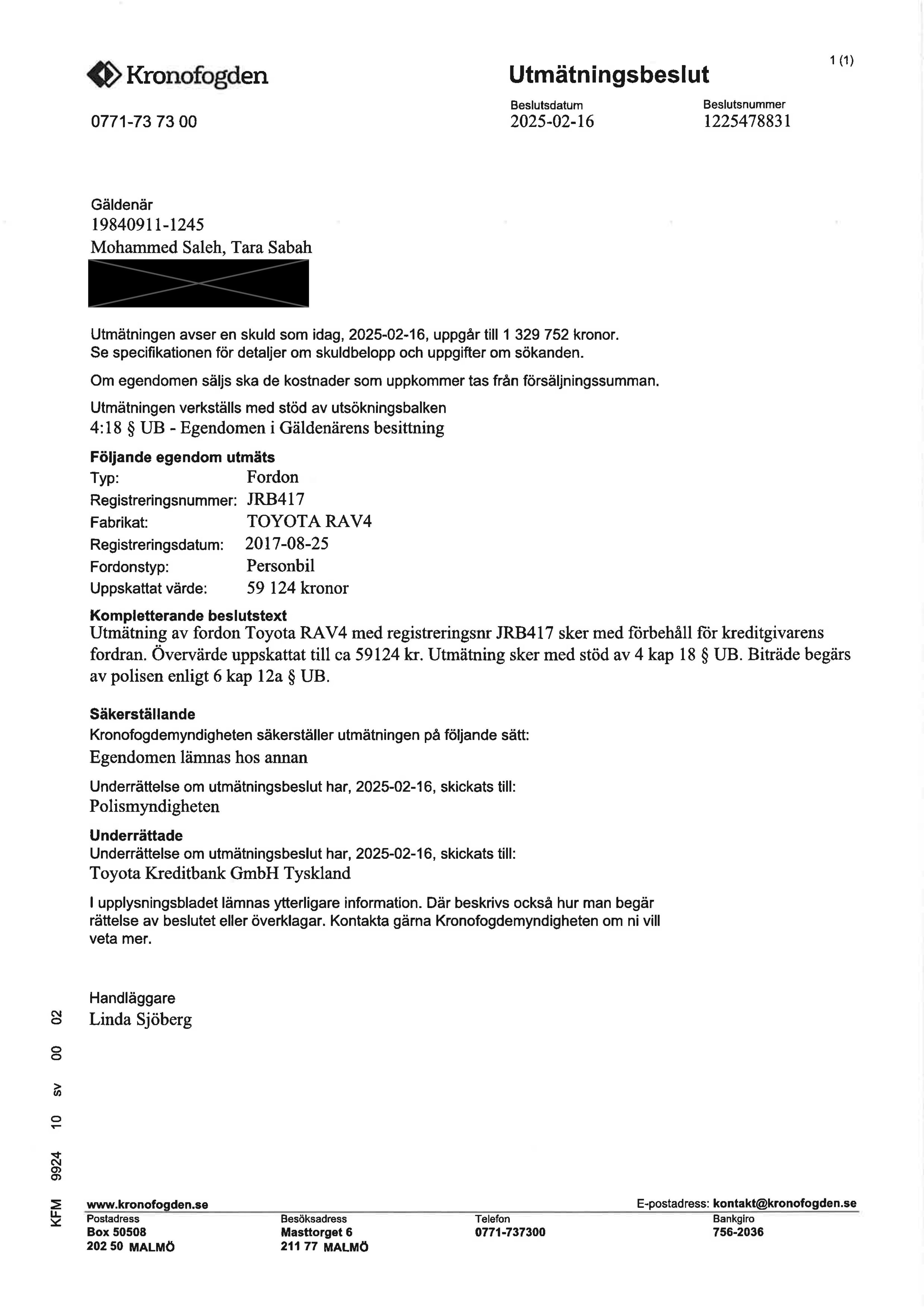 Efter att jag publicerat mitt reportage tog jag direkt kontakt med Kronofogdens ansvariga handläggare för Tara Salehs skulder. Jag krävde svar på varför bilen – en känd tillgång – fortfarande inte hade beslagtagits. Samtidigt informerades flera av mina kontakter inom Göteborgspolisen, som arbetar med ärenden kopplade till Tara Saleh, om uppgifterna och fick se dokumentationen.