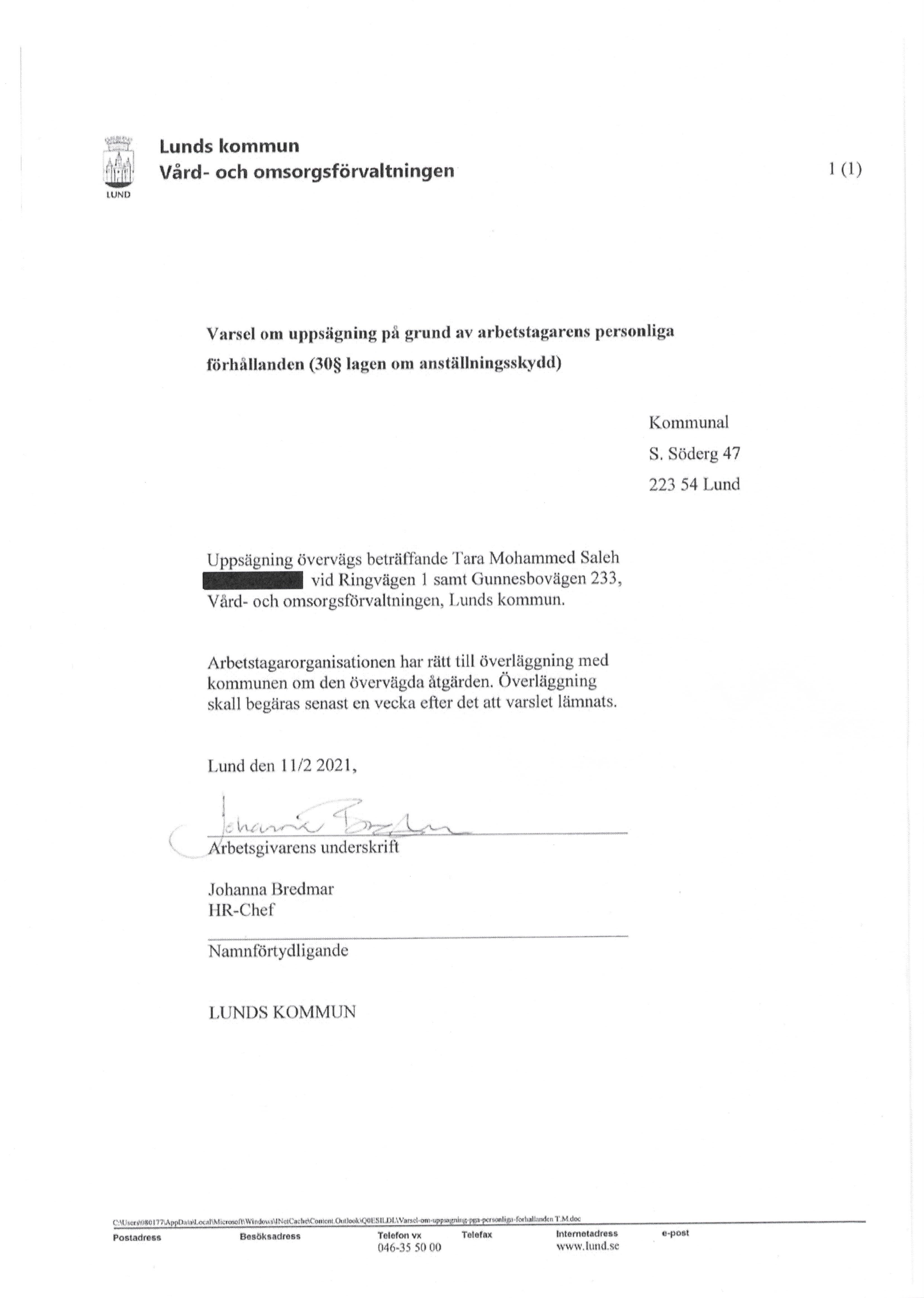 Efter att Tara Saleh trakasserat sina kollegor på ett LSS-boende och samtidigt hyllat Islamiska statens terrorism i sociala medier valde Lunds kommun att köpa ut henne från sin tjänst. Men det dröjde inte länge innan hon lyckades få en ny anställning – denna gång vid ett annat boende i Göteborg. Även denna anställning tog snabbt slut.