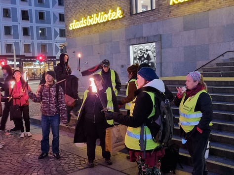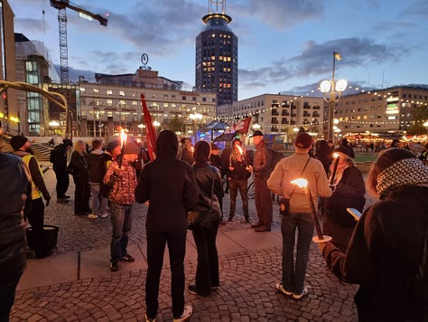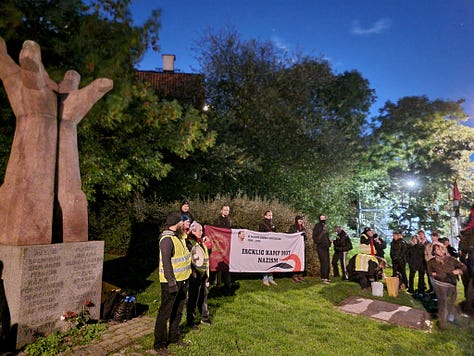 På årsdagen samlas en handfull aktivister från Syndikalisterna och AFA för att hålla Söderbergs minne vid liv. Maskerade och allvarstyngda tågar de genom mörkret med lyktor i händerna, och håller teatraliska tal om att de aldrig kommer att förlåta mordet.