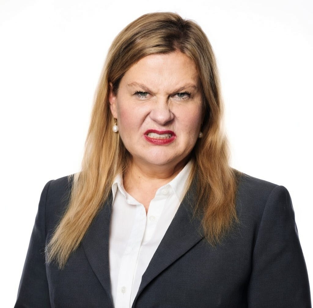 Hon tvingades lämna Gefle Dagblad efter anklagelser om att ha saboterat arbetsmiljön. Och nu sitter hon där och rasar mot en journalist som redan vid 23 års ålder har fått större genomslag än hon någonsin kommer att få under hela sitt liv. Hennes lögner – och hennes ovilja att bemöta mina svar – visar dessutom att hon tycks vara minst lika gräslig på insidan som på utsidan.