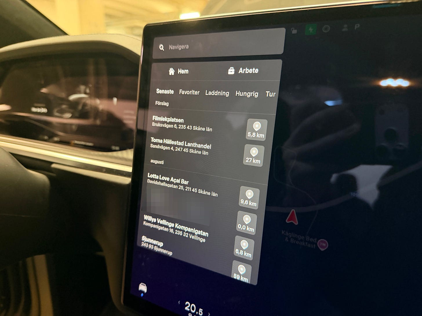 Där rådde fotoförbud – men jag valde ändå att dokumentera tillfället. Samtidigt passade jag på att gå igenom bilens färddator för att kartlägga vilka adresser den registrerade huvudanvändaren, ”P”, faktiskt hade besökt.