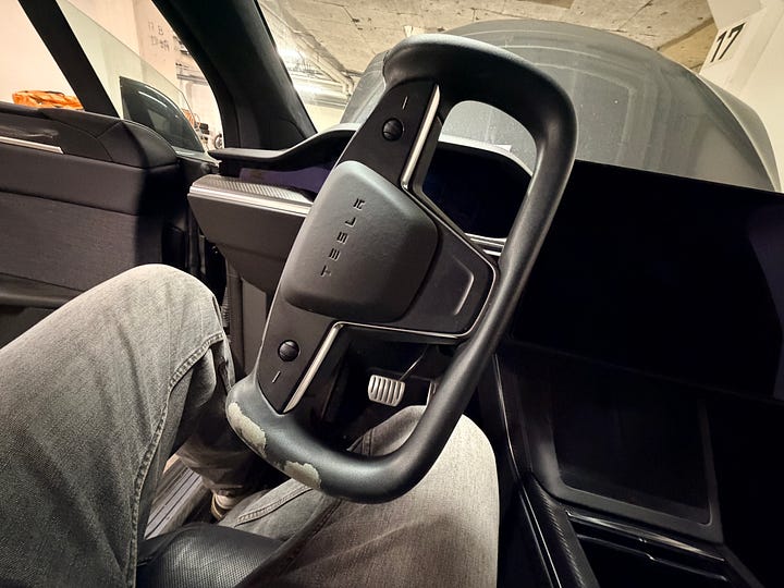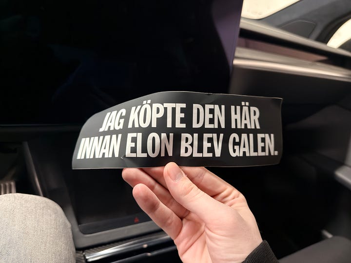Teslan kördes iväg. Åkgräsklipparen likaså.