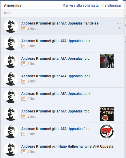 Det skulle inte dröja länge innan Andreas Krummel började gilla och skriva till Facebooksidan i AFA Uppsalas namn som hon trodde administrerades av hennes meningsfränder.